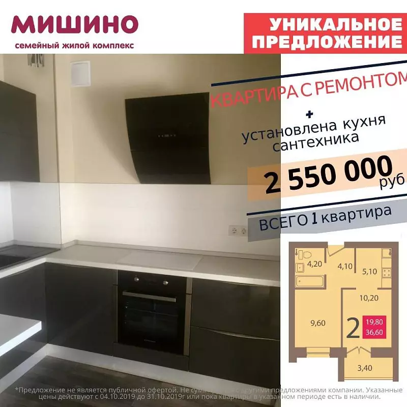 В семейном жилом комплексе "Мишино" стартовало уникальное предложение на две 2-х комнатные квартиры!