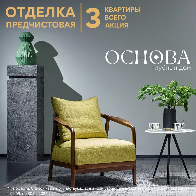 На сегодняшний день, клубный дом "Основа" предлагает приобрести квартиру на старте продаж по выгодной цене, и дарит возможность выбрать отделку: