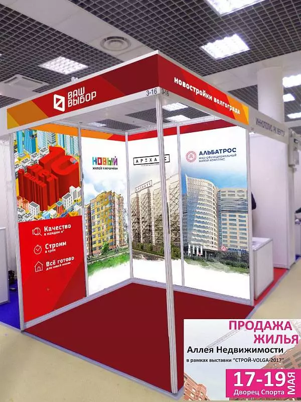 Мы ждем вас у своего стенда "НОВОСТРОЙКИ ВОЛГОГРАДА" от инвестиционноко-строительной компании "Ваш выбор" 17, 18 мая - с 10.00 до 17.00, 19 мая - с 10.00 до 14.00.