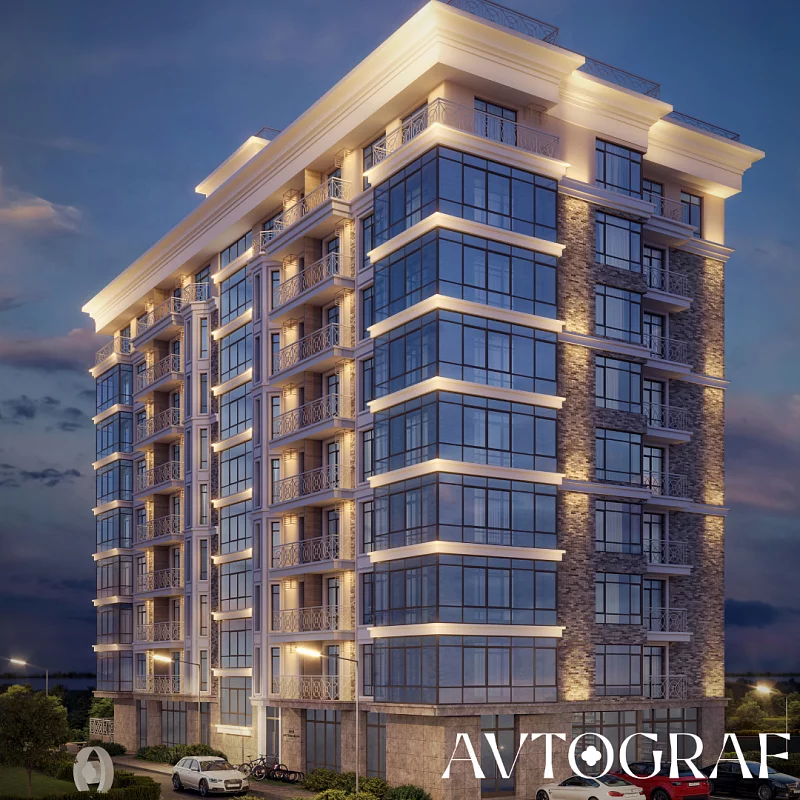Девяти этажное здание - яркий образец стиля "современный модерн". Гармоничный баланс между красотой, функциональностью и современностью. Большие широкоформатные окна, с витражным остеклением в пол, выразительные эркеры в квартирах — пожалуй, именно таким должен быть современный дом премиум-класса в сердце престижного района — строгим и притягательным, респектабельным и вдохновляющим, гармоничным и многогранным.