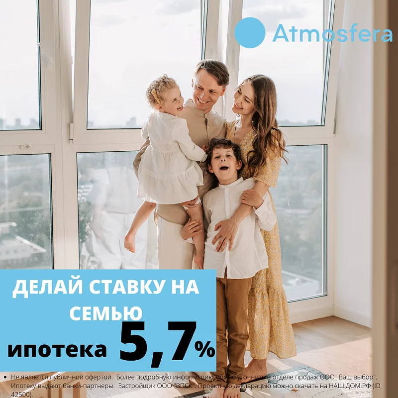 Спешим сообщить приятную новость, если у вас есть ребенок, рожденный после 1 января 2018 года, то приобрести квартиру в ЖК Atmosfera, вы можете на выгодных ипотечных условиях.
