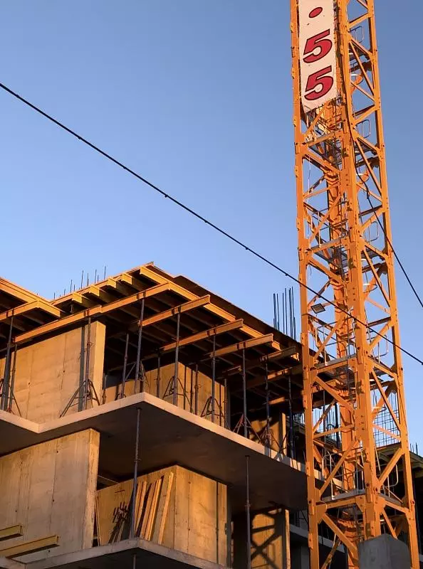 3-х этажный подземный паркинг и возводится 5 этаж жилого дома «Фаренгейт». В ближайшее время начнется кирпичная кладка фасада дома.