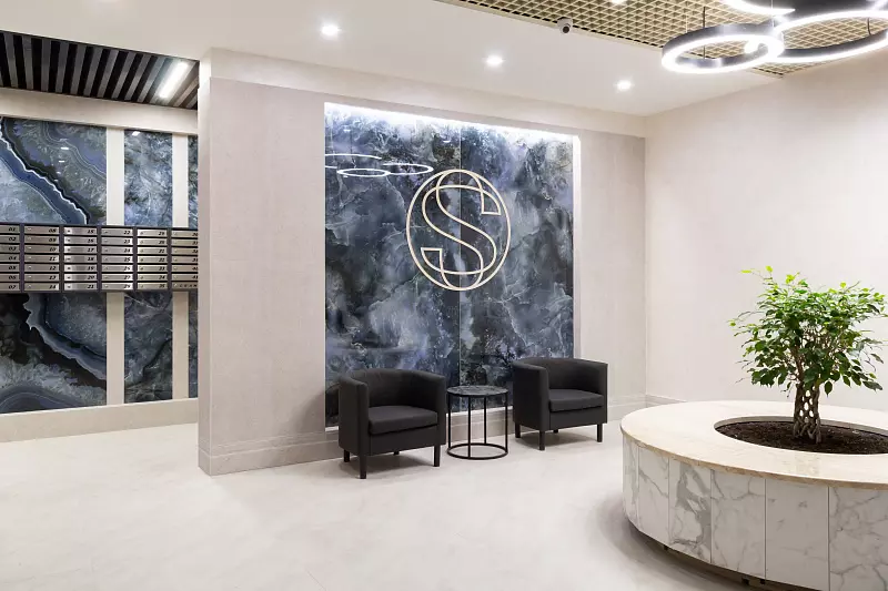 Листайте карусель, оцените отделку холла в парадной САНТОРИНИ, которая каждый день встречает и провожает жильцов.