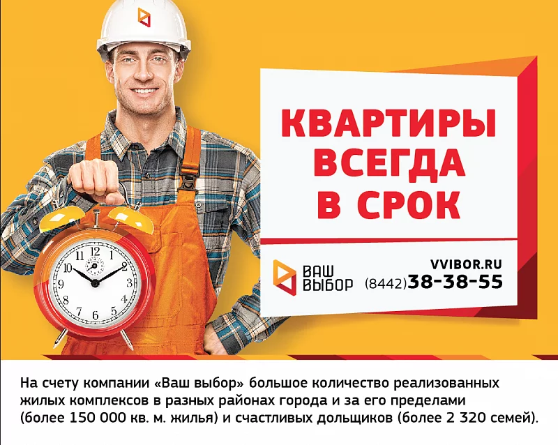 На счету компании «Ваш выбор» за 8 лет работы большое количество реализованных жилых комплексов (более 150 000 кв. м. жилья введено в эксплуатацию) и более 2320 семей переехали в новые уютные квартиры.
