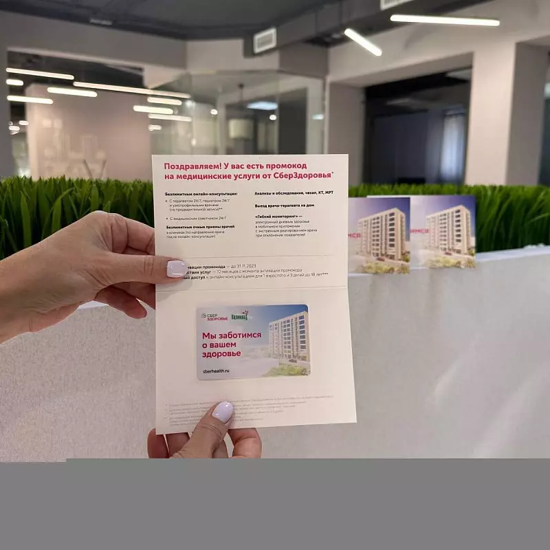 Нашим покупателям квартир в жилом доме «Калинка» мы дарим 🎁 персональный сертификат на медицинские услуги от СберЗдоровье.