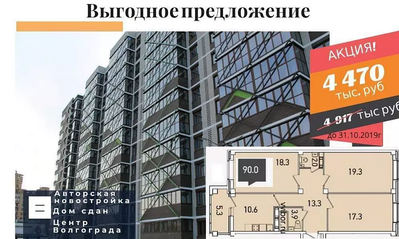 *Предложение не является публичной офертой. Не суммируется с другими предложениями компании. Указанные цены действуют с 01.10.2019 до 31.10.2019г или пока квартиры в указанном периоде есть в наличии.