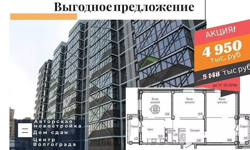 Успей купить шикарную 3-х комнатную квартиру в авторском жилом комплексе "Артхаус" по выгодной цене в октябре!