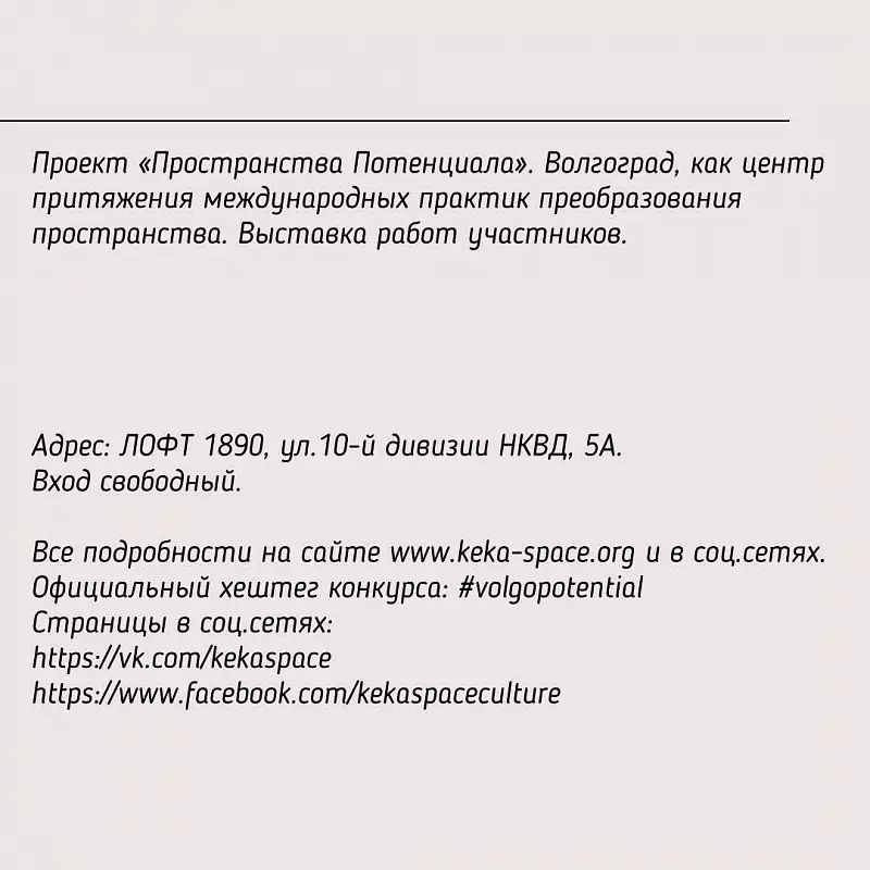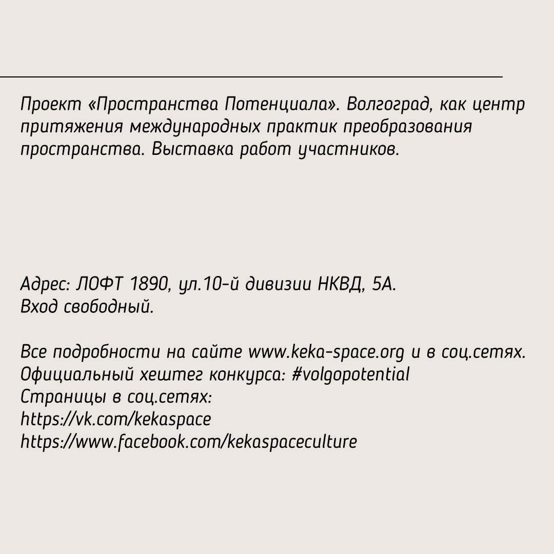 Проект «Пространства потенциала» представляет комплекс мер, призванных объединить усилия различных заинтересованных сторон - горожан, профессионального сообщества, местного бизнеса и власти - для улучшения качества предметно-пространственной среды российских городов, в целом, и Волгограда, в частности.