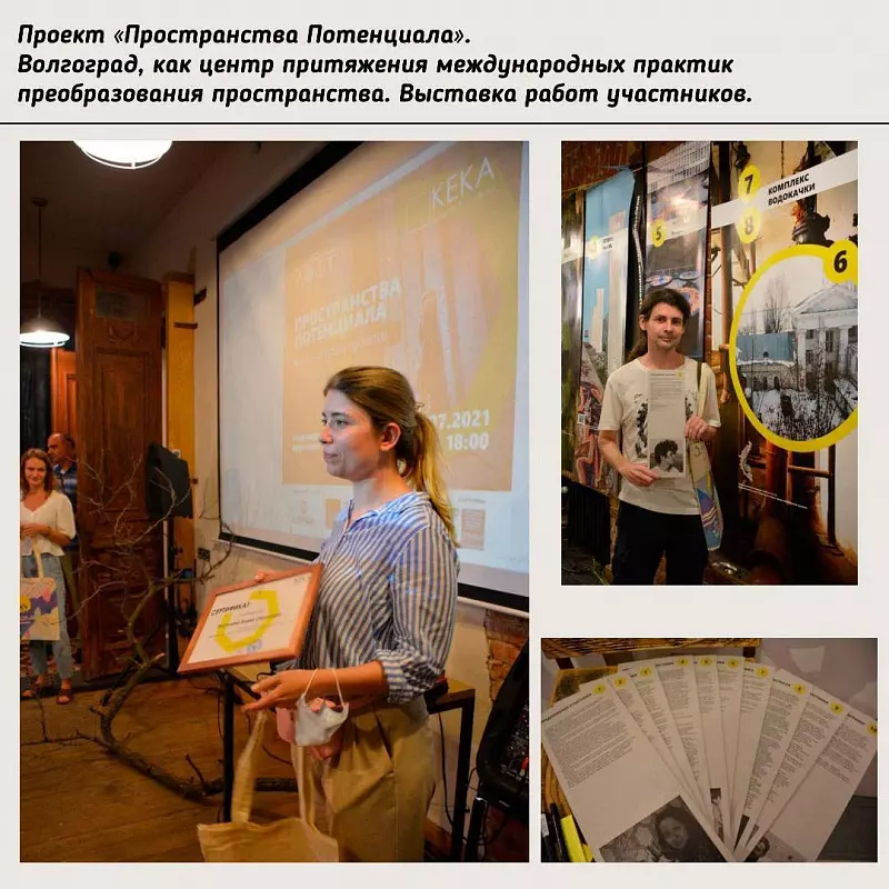 С 23 июля по 31 августа 2021 года в Волгограде проводится выставка проектов участников международного конкурса «Пространства Потенциала». Впервые жители города сами представляют точки потенциала, а затем в команде с международными экспертами и наставниками разработают программу реализации выбранных пространств.