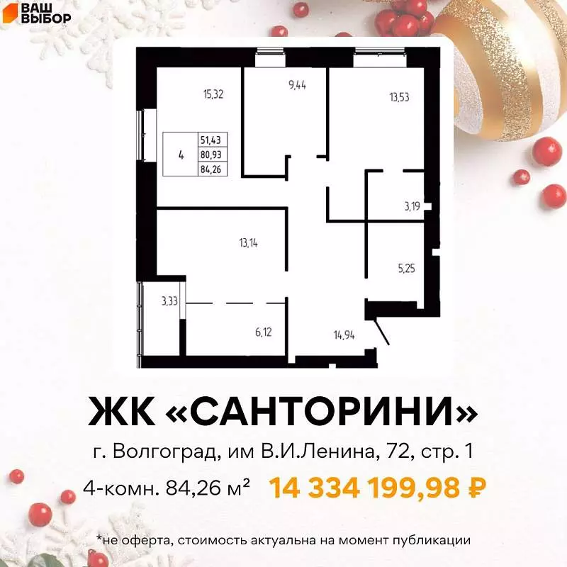 ◦ ЖК «Санторини»: впечатляющие 84.26 м² — для большой семьи
