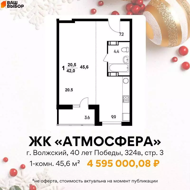 ◦ ЖК «Атмосфера»: продуманные 45.6 м² — для комфортной жизни