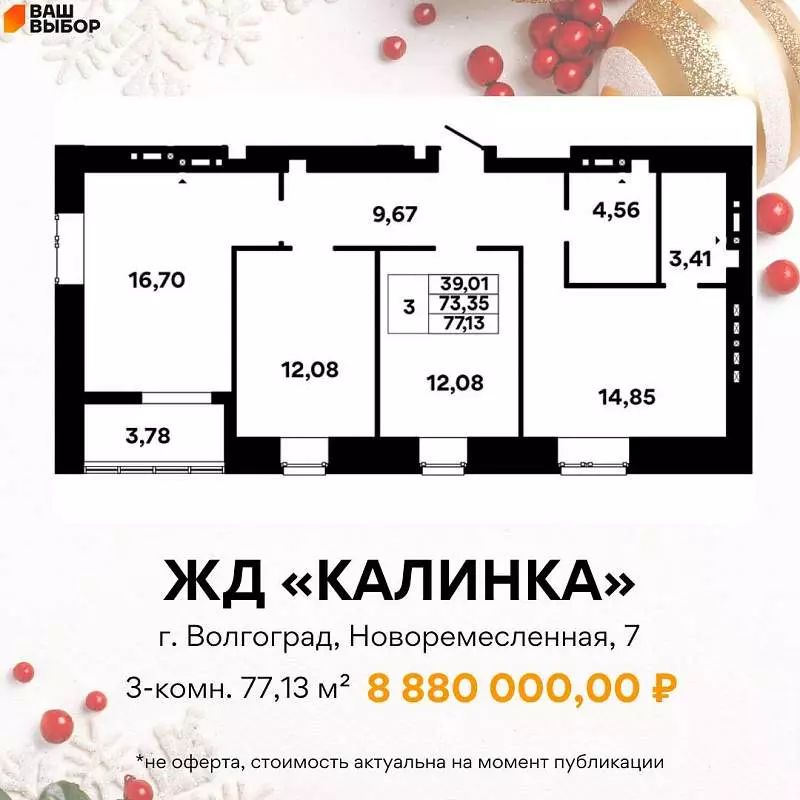 ◦ ЖК "Калинка": семейные 77.13 м² — когда важен каждый метр