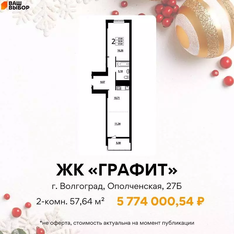 ◦ ЖК «Графит»: просторные 57.64 м² — для тех, кто ценит свободу
