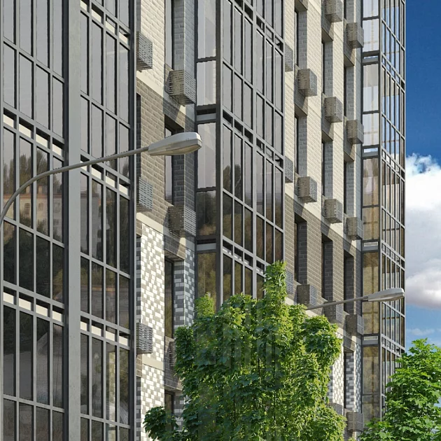 Статусный дом Grafit – уникальный архитектурный проект, главным аспектом в строительстве которого является надежность, функциональность и высокая энергоэффективность. Наружные стены из облицовочного силикатного кирпича графитного цвета имеют узор кирпичной кладки в шахматном порядке до 3-го этаже, далее цветовая гамма чередуется оттенками благородного серого в сочетании с белым цветом кирпича.