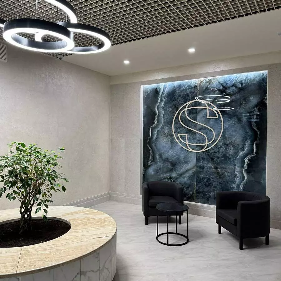 Керамогранит люксового качества выполнен в трех цветовых решениях, где гармонично сочетаются темные и светлые оттенки мраморного узора. Все это создает строгую геометрию простых форм. И придает комплексу по-настоящему запоминающийся вид на долгие годы.