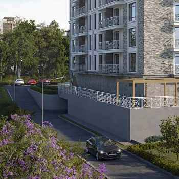 В основе идеи архитектуры проекта лежит слияние двух стилей: классика и модерн. Архитектор вдохновился историческим наследием локации. Земельный участок принадлежит к исторической части города, который застраивался по генеральному плану, утвержденному самим императором Александром I.