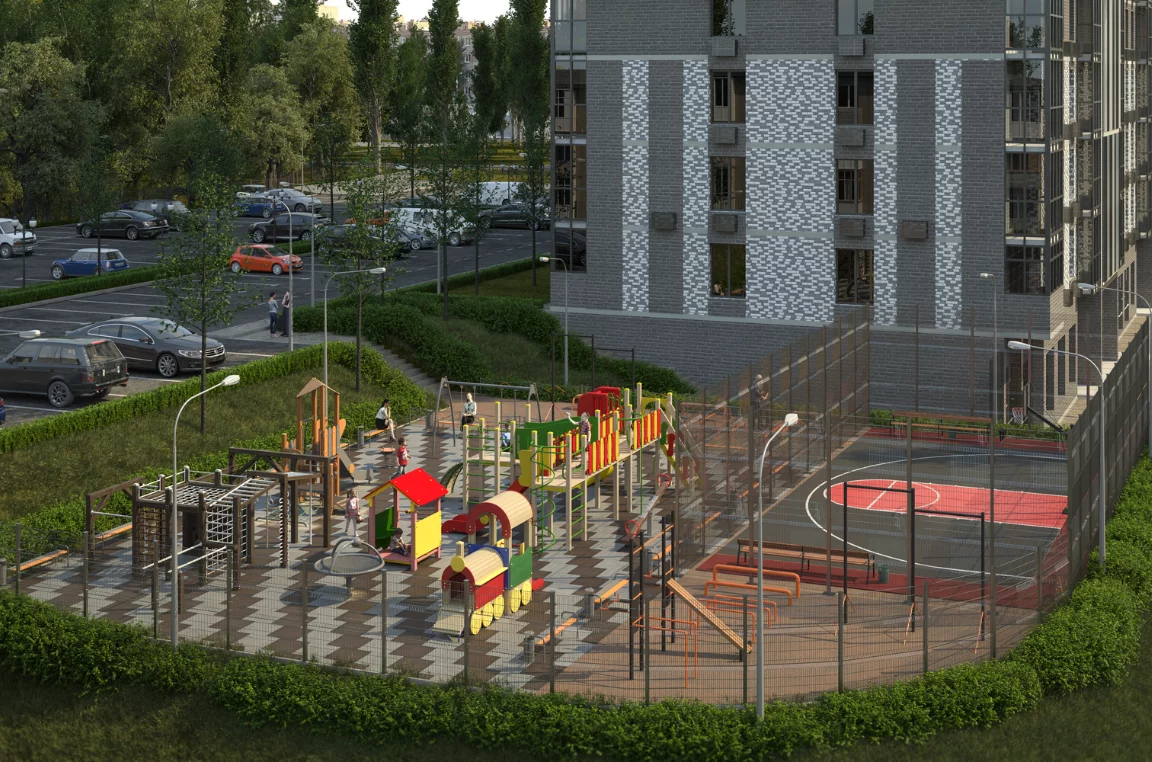 Закрытая территория комплекса, обеспечит безопасность проживания и надежную охрану личного транспорта, парковка здесь разместит 108 автомобилей, а уникальная обособленная детская площадка позволит обеспечить досуг маленьким жителям дома.