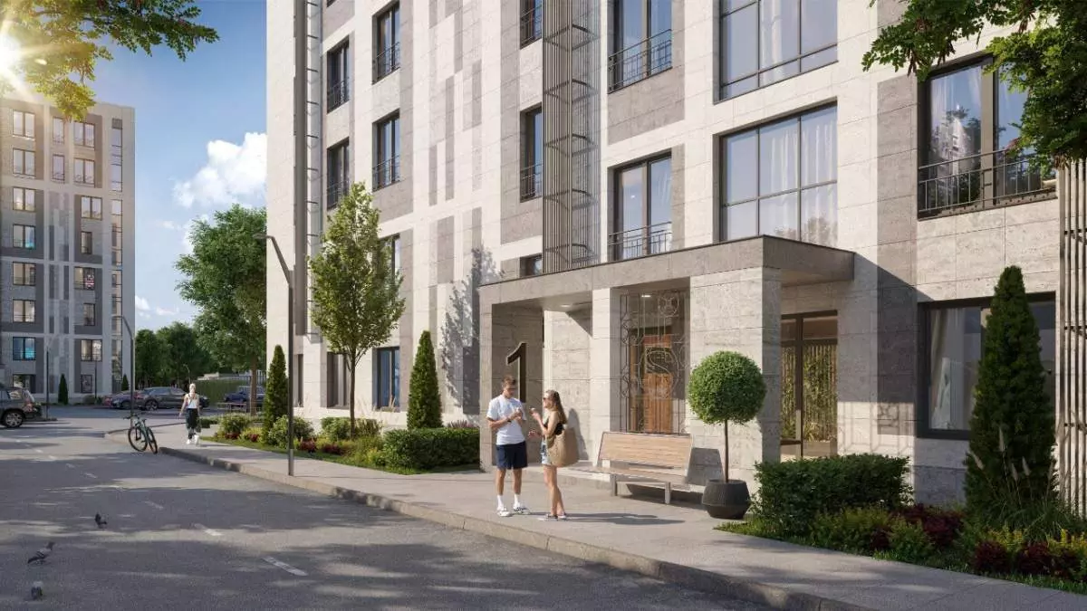 Парадный вход в дом оформлен в элегантном европейском стиле. Подчеркнет статус его обитателей и будет комфортным и стильным общественным пространством. Благодаря высоким потолкам и панорамным окнам в пол , лобби становится невероятно светлым, где каждый элемент дизайна тщательно проработан.